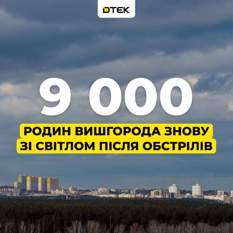 07:51 ДТЭК подтвердила вчерашнюю информацию местных телеграм-групп, что Вышгороду под Киевом дали свет, которого не было четыре дня.