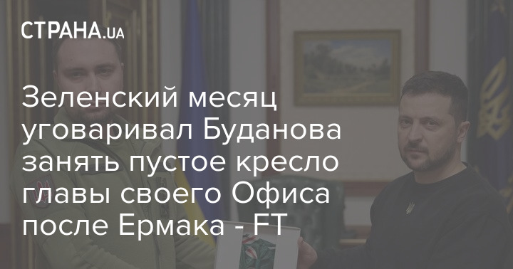 Владимир Зеленский на протяжении всего последнего месяца уговаривал руководителя ГУР Кирилла Буданова возглавить Офис президента Украины, пишет The Financial Times со ссылкой на источники.