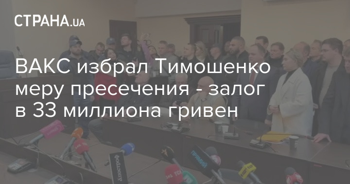 Высший антикоррупционный суд избрал главе партии "Батькивщина" Юлии Тимошенко меру пресечения в виде залога в размере 33 миллиона гривен, хотя Специализированная антикоррупционная прокуратура просила 50 миллионов.