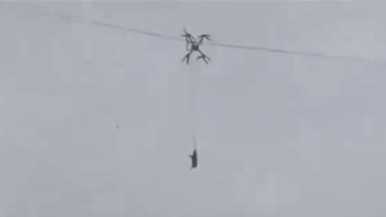 В Китае фермер оставил всю деревню без света, когда подвесил свинью к беспилотнику. Видео