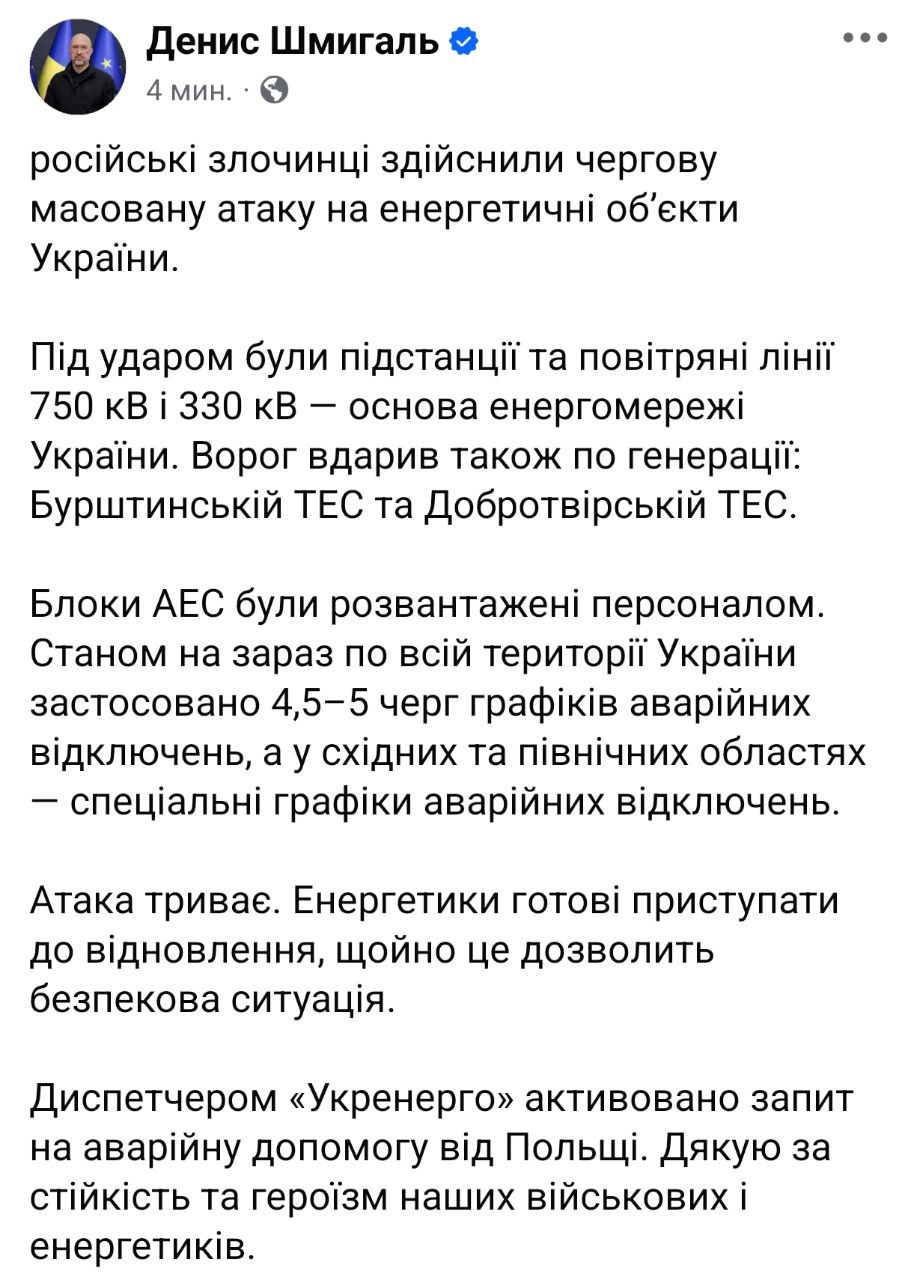 8:05 На западе Украины идут серьёзные проблемы с энергетикой.