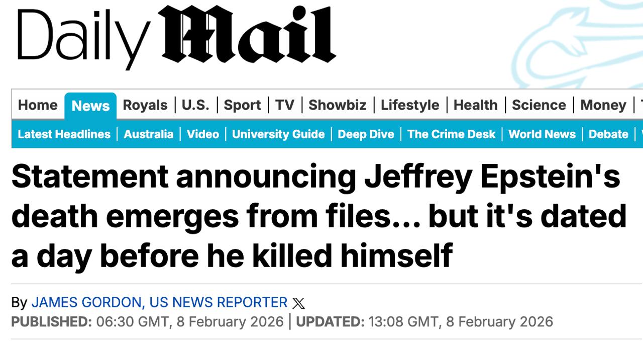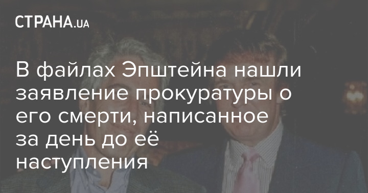 В файлах Эпштейна нашли заявление прокуратуры о его смерти, написанное за день до её наступления