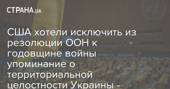 США предлагали исключить из принятой вчера резолюции Генеральной Ассамблеи ООН о поддержке продолжительного мира в Украине упоминание о территориальной целостности страны.