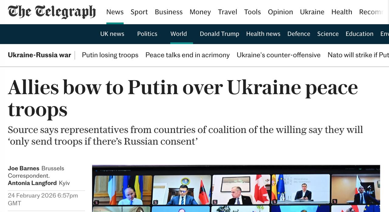 В "коалиции желающих" постепенно приходят к выводу, что отправку зарубежных миротворцев в Украину нужно обсуждать с Москвой, иначе россияне будут расценивать иностранных военных как законную цель.