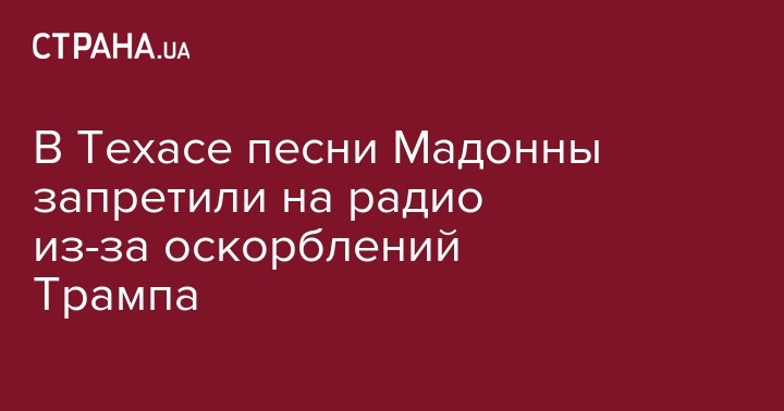 В американском штате Техас радиостанция HITS 105 запретила ротацию песен певицы Мадонны из-за ее резкой критики в адрес президента США Дональда Трампа. Об этом сообщает Independent.