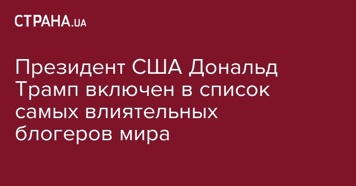 Президент США Дональд Трамп включен в список самых влиятельных блогеров мира