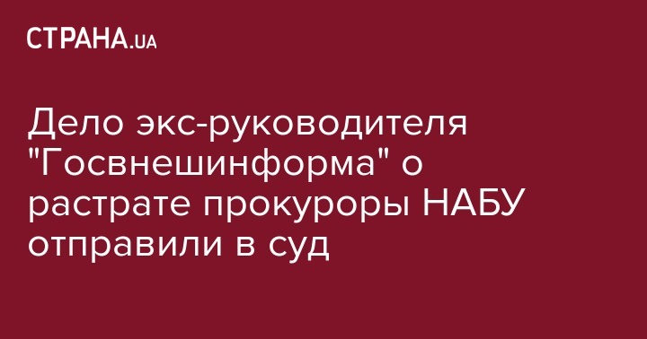 В отношении бывшего руководителя госпредприятия "Госвнешинформ" и его заместителя, которых подозревают в растрате 9,87 миллионов гривен, завершено досудебное расследование. Об этом сообщила пресс-служба НАБУ.