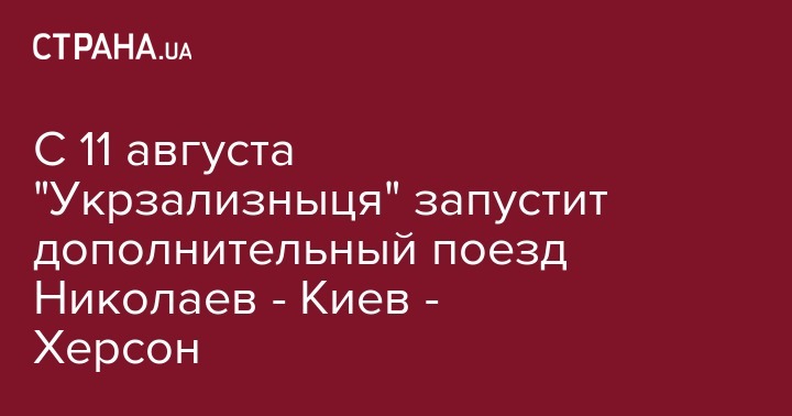 С 11 августа "Укрзализныця" запустит дополнительный поезд Николаев - Киев - Херсон
