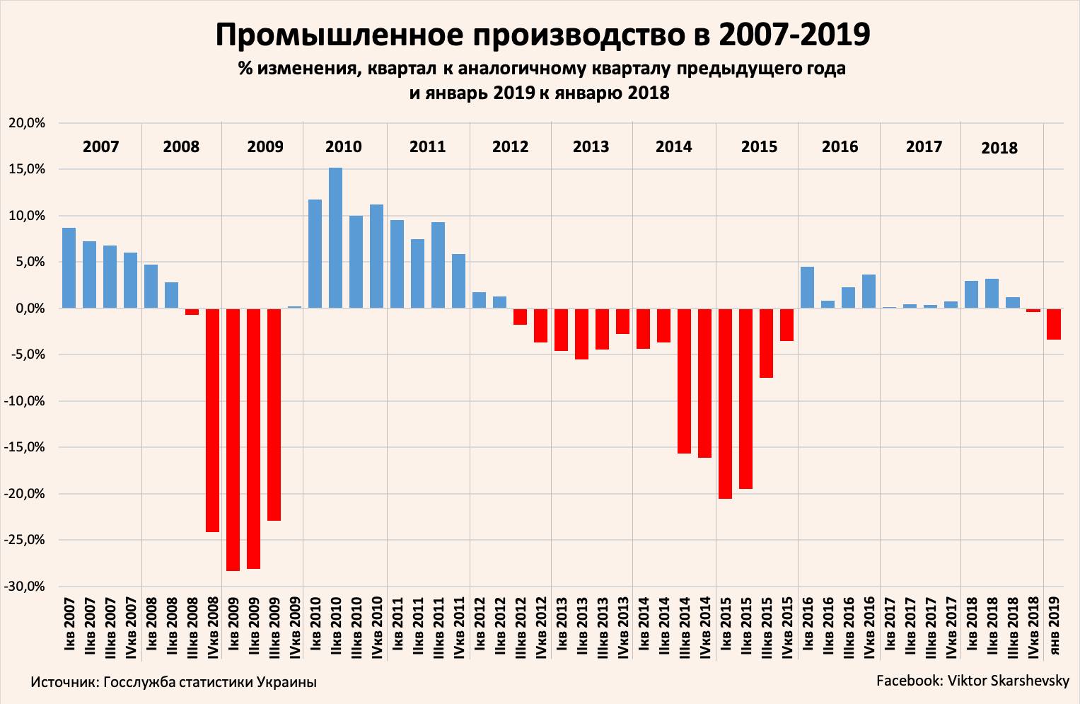 Поэтому, когда премьер и президент повторяют как мантру, что украинская экономика растет 12 кварталов подряд, промышленности это не касается. Уже не растет. Начиная с четвертого квартала 2018 года.