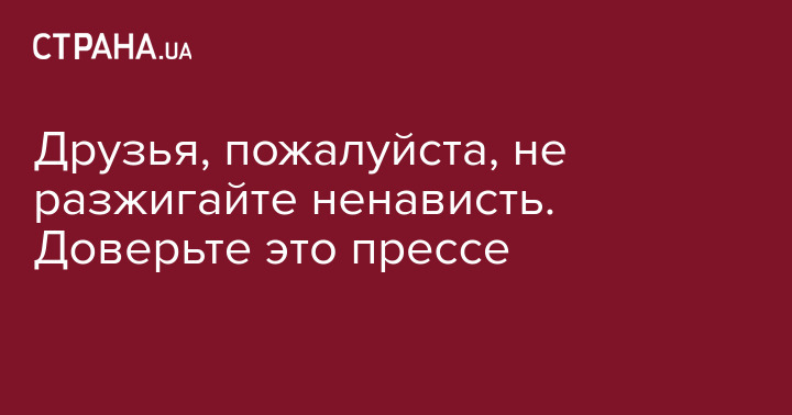 Друзья, пожалуйста, не разжигайте ненависть. Доверьте это прессе.
