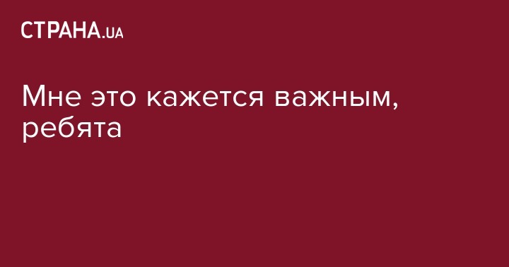 Мне это кажется важным, ребята.
