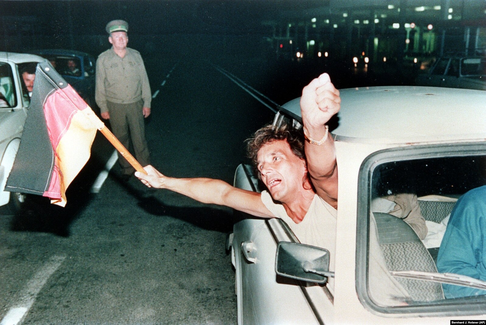 Вересень 1989. Східний німець перетинає угорсько-австрійський кордон із прапором ФРН