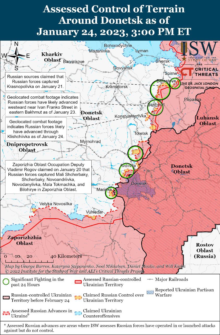 - Російські сили помічені на захід від Кліщеївки. Ймовірно, це свідчить про те, що вони контролюють селище.