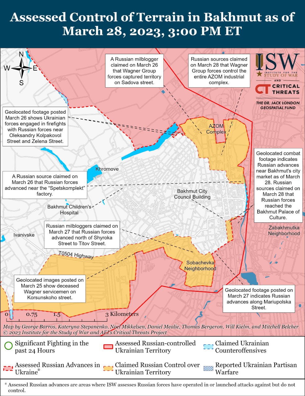 "Ці твердження правдоподібні з огляду на геолоковані візуальні докази просування Вагнера до центру міста, опубліковані 28 березня", - заявляють в інституті.