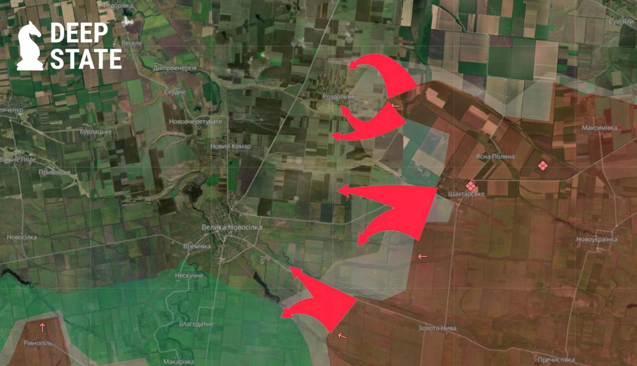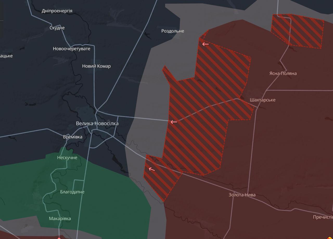 08:27 Російські війська вчора прорвалися до околиць Великої Новосілки на Донеччині. Там настали "вкрай важкі часи", пише український військовий паблік Deep State.