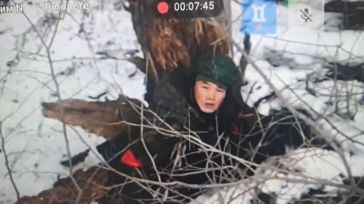Кадр із, як стверджується, північнокорейським солдатом у Курській області РФ в об'єктиві українського FPV-дрону.