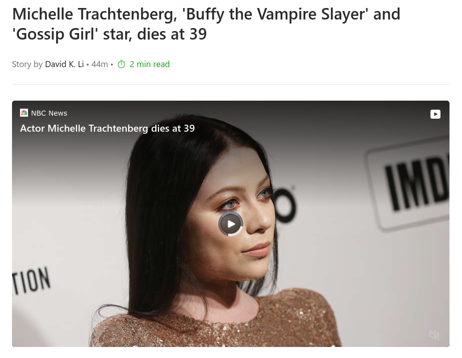 Померла зірка серіалів "Баффі - переможниця вампірів" та "Пліткарка" Мішель Трахтенберг.