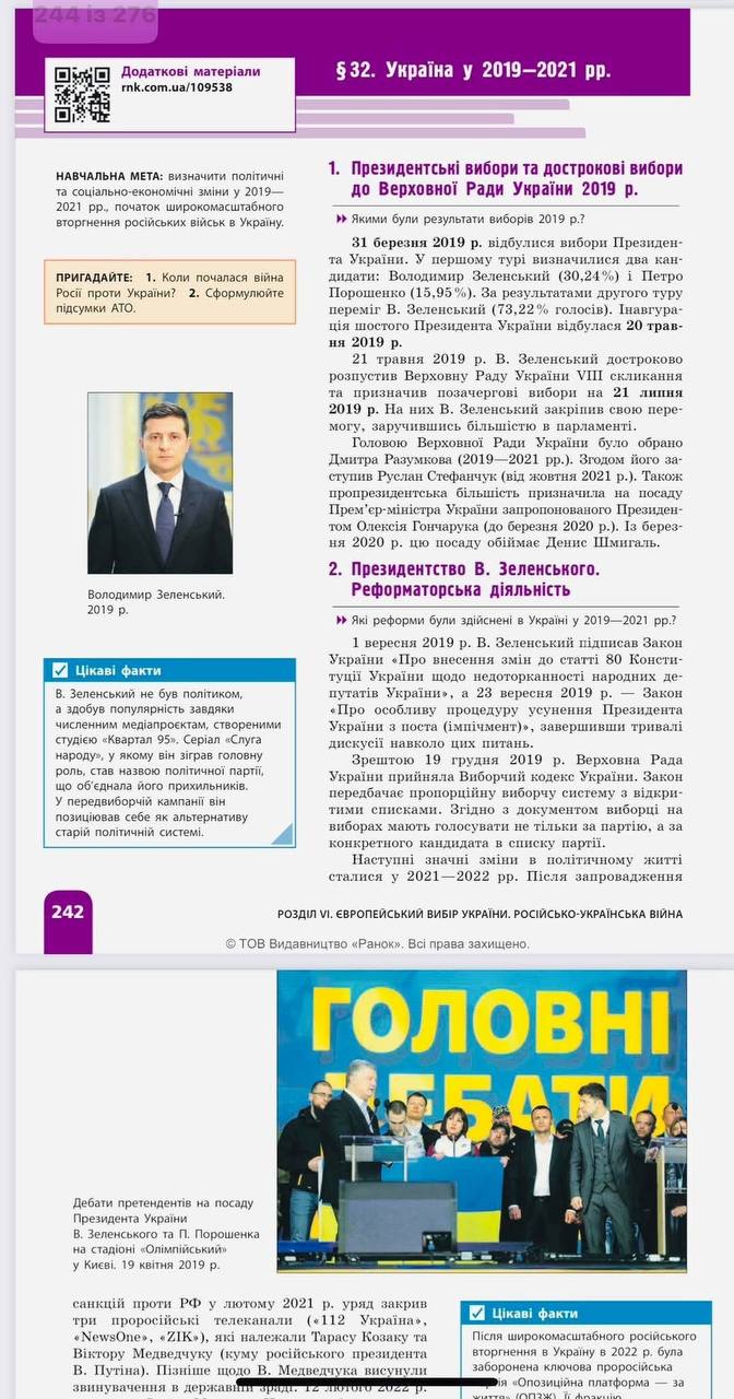 У цих посібниках кілька розділів присвячені подіям останніх років, включаючи президентство Володимира Зеленського та повномасштабне вторгнення Російської Федерації.