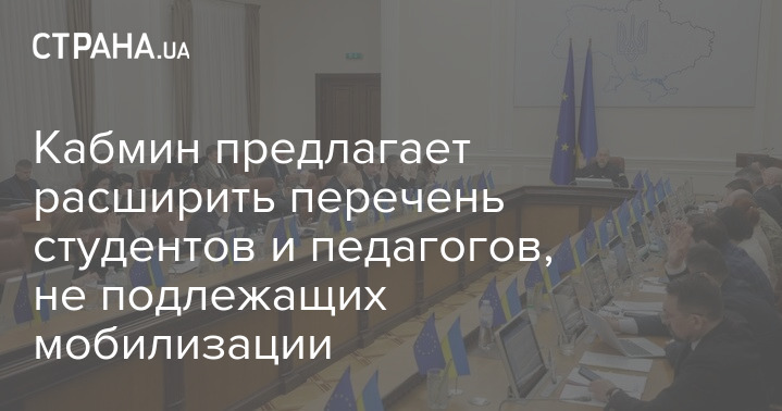 Кабінет міністрів схвалив внесення змін до статті 23 закону про мобілізаційну підготовку та мобілізацію щодо прав педагогічних працівників та здобувачів освіти. Проект пропонує розширити перелік студентів та педагогів, які не підлягають мобілізації.