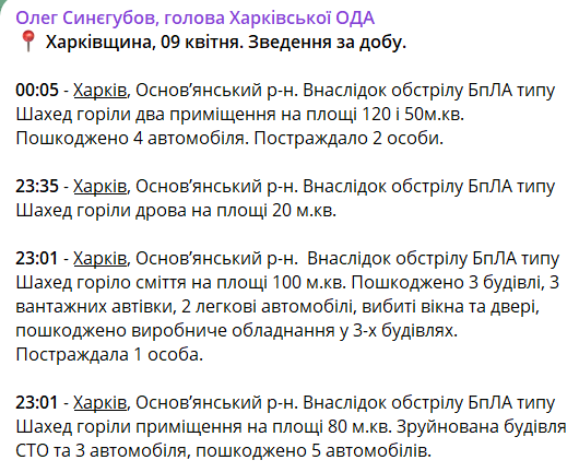Нагадаємо, кілька днів тому в результаті атаки дронів у Харкові загинули чотири особи, ще 35 постраждали.