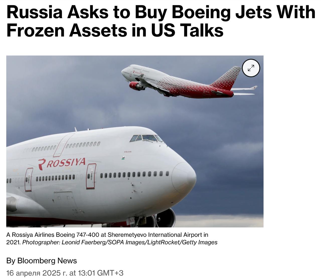 Росія хоче придбати у США літаки компанії Boeing за рахунок заморожених на Заході активів.