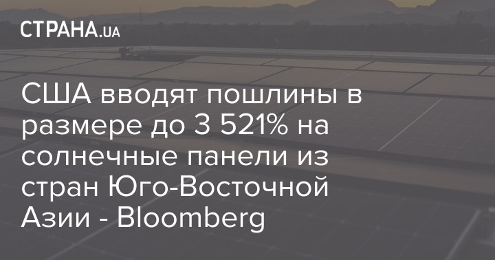 Міністерство торгівлі США остаточно визначило рівень мит на продукцію сонячної енергетики з чотирьох країн Південно-Східної Азії: Камбоджі, В'єтнаму, Малайзії та Таїланду. Для Камбоджі буде встановлено мито у розмірі 3521%, для виробників із Малайзії – 34,4%, з В'єтнаму – 395,9%, з Таїланду – 375,2%.