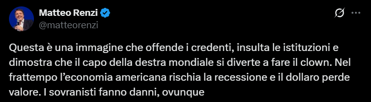 "Це зображення ображає вірян, принижує інститут папства і демонструє, що лідер світових правих віддає перевагу блазню", - написав він у X.