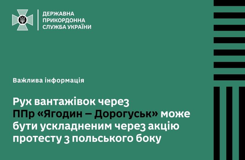 Наразі рух вантажівок в обох напрямках через "Ягодин-Дорогуськ" припинено.