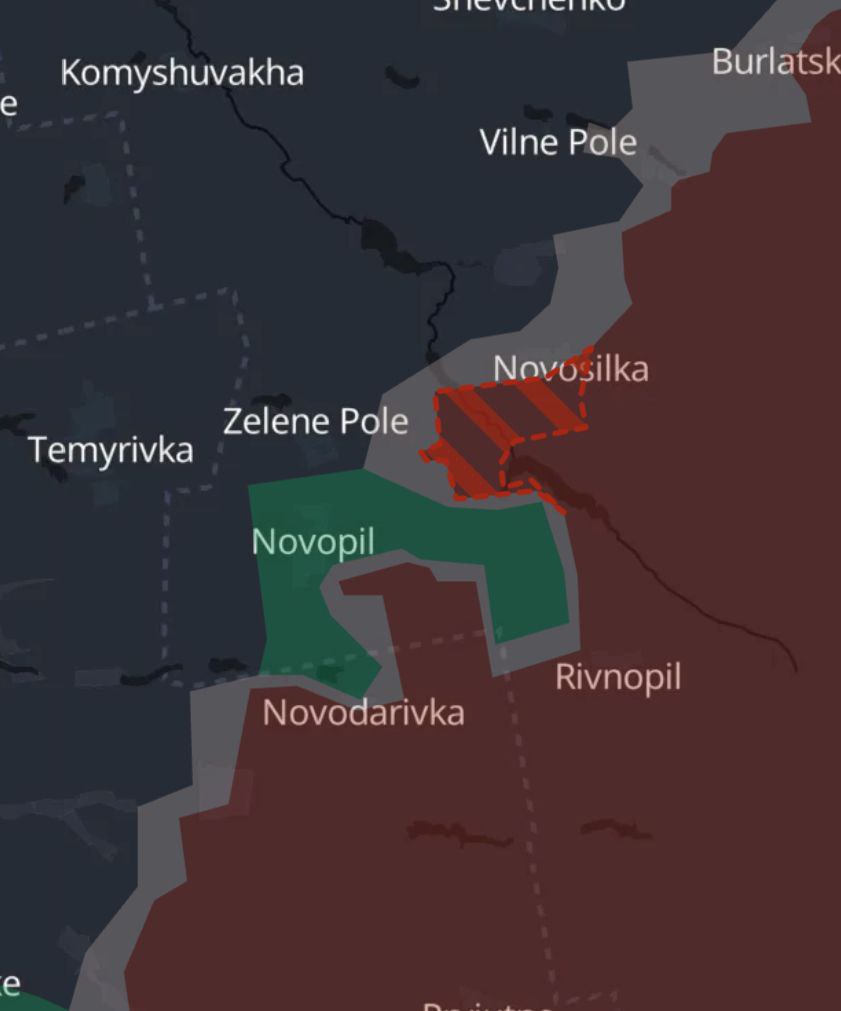 Також війська РФ контролюють більшу частину села Богатир на Новопавлівському напрямку (про значення села ми писали в окремому матеріалі ) і просунулися на захід від Великої Новосілки, в районі Зеленого Поля.