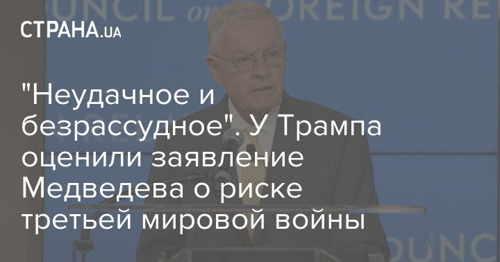 У Білому домі назвали "невдалою" та "безрозсудною" заяву заступника голови Ради безпеки РФ Дмитра Медведєва про ризик третьої світової війни через погрози президента США Дональда Трампа на адресу російського лідера Володимира Путіна.