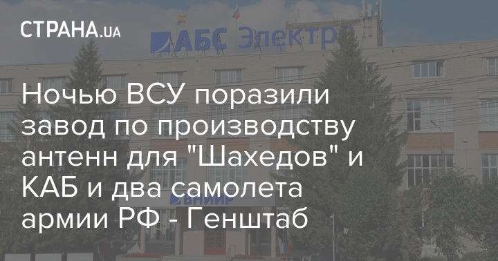 Вночі ЗСУ вразили завод з виробництва антен для "Шахедів" та КАБ та два літаки армії РФ - Генштаб