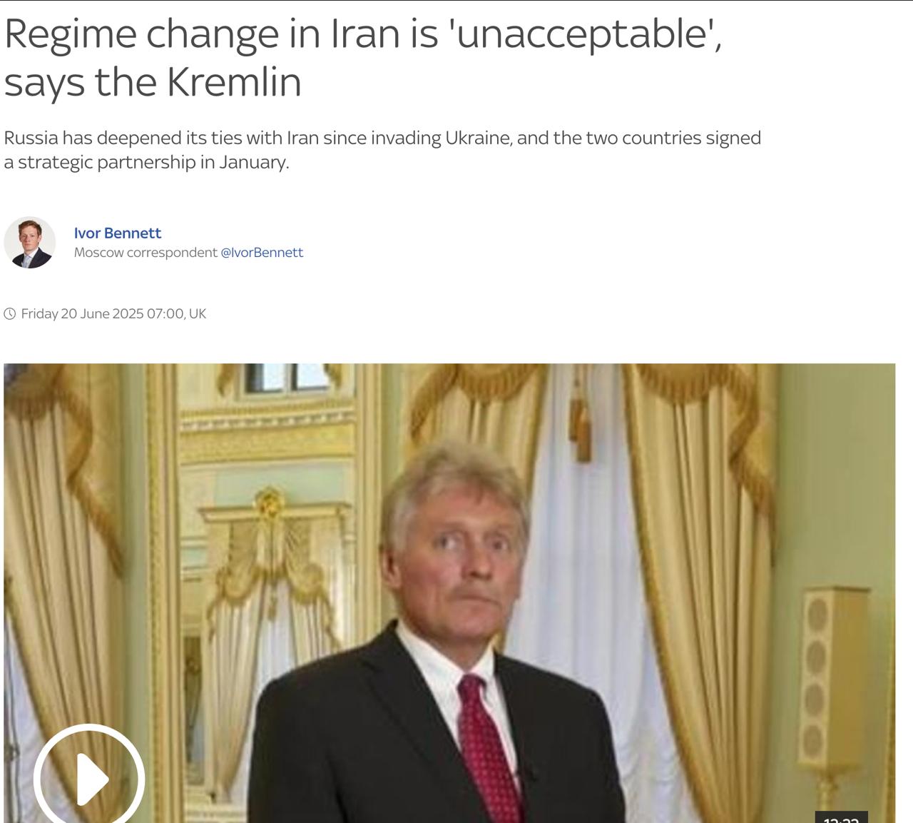 "Перемир'я є перемир'я, і ви припиняєте бойові дії. Але Америка не каже, що ми припинимо будь-які поставки. Великобританія теж цього не каже. Франція теж цього не каже. У цьому й полягає проблема", - сказав речник Кремля.