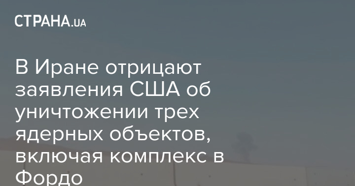 Іранська влада заперечує заяви США про знищення трьох ядерних об'єктів, включаючи комплекс у Фордо. Про це повідомляють місцеві ЗМІ.