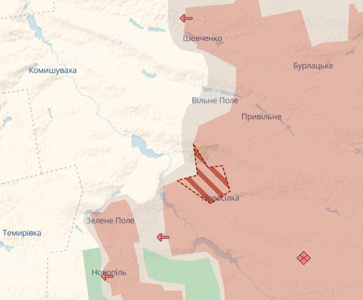 17:28 Армія РФ захопила Новосілку та Запоріжжя, що біля кордону з Дніпропетровською областю, а також просунулась на двох ділянках на південь, повідомляє Deep State.