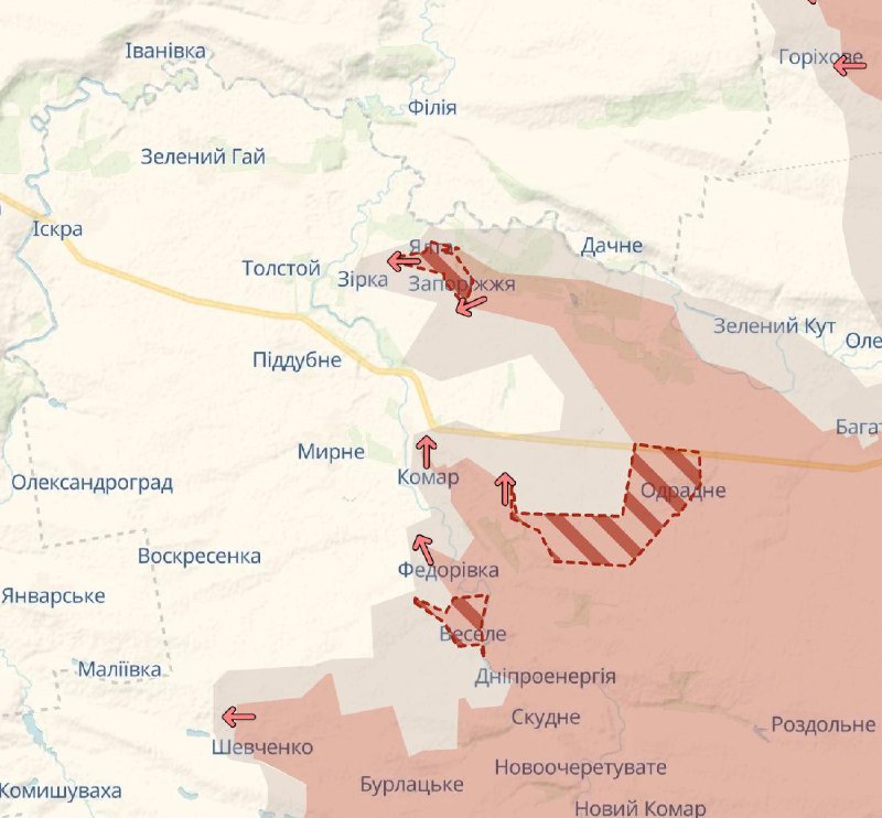 Ще РФ знову просунулась у районі Кам'янського – це найкоротший напрямок до міста Запоріжжя.