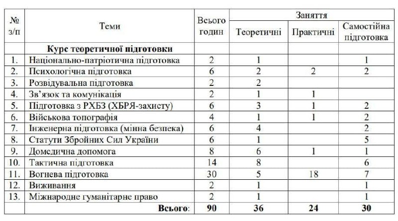 Ще 14 годин будуть присвячені тактичній підготовці, а 8 годин – домомедичній підготовці.