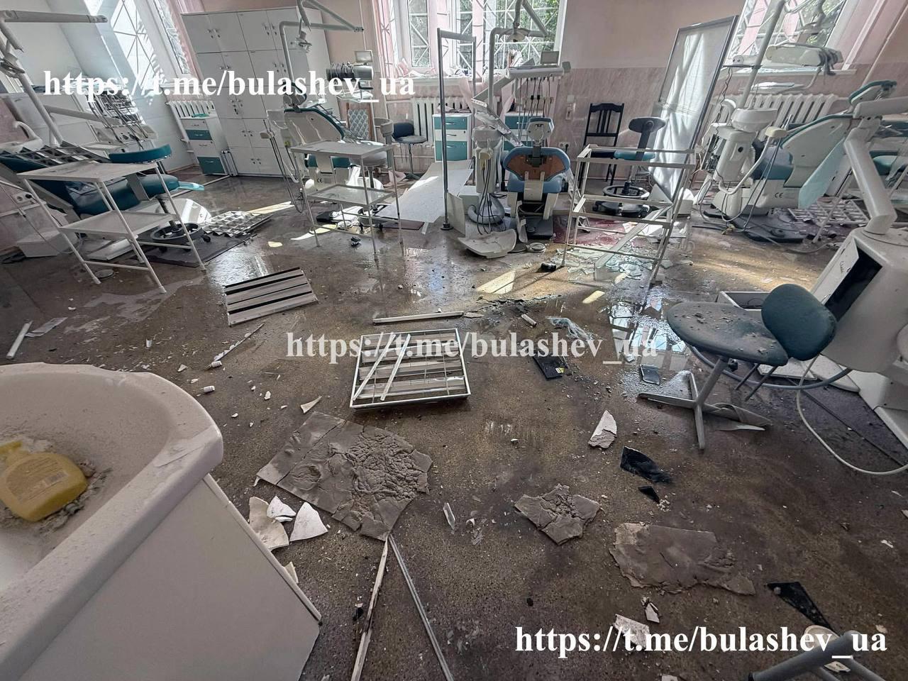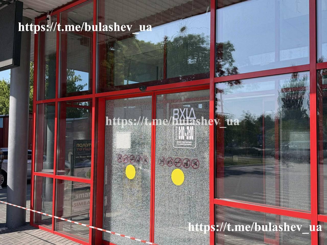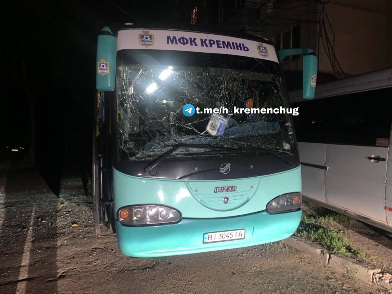Пошкоджено автобус футбольні команди "Кремень", лікарня та ТЦ.