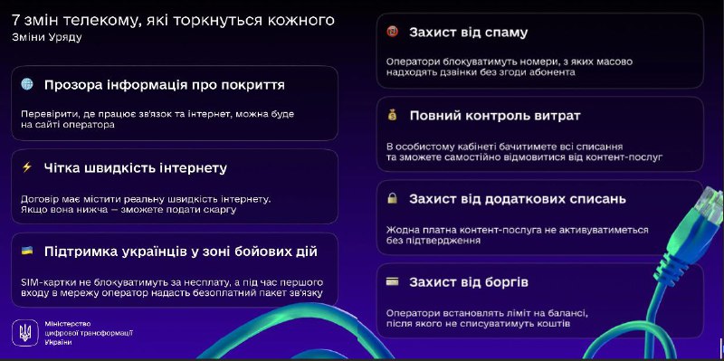Кабінет міністрів затвердив нові правила надання електронних комунікаційних послуг, які зобов'язують вказувати у договорі з провайдером швидкість інтернету та дають телефонним операторам інструменти для боротьби зі спам-викликами та нав'язливою рекламою.