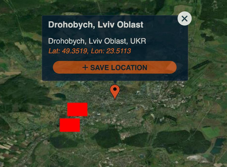 13:47 У районі Дрогобича досі вирують дві сильні пожежі, згідно з даними супутникового сервісу NASA.