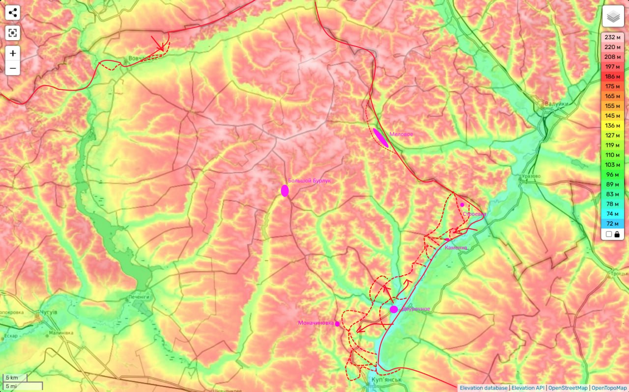 Крім того росіяни просунулися на південь від Торецька і біля Куп'янська, в районі Сіньківки.
