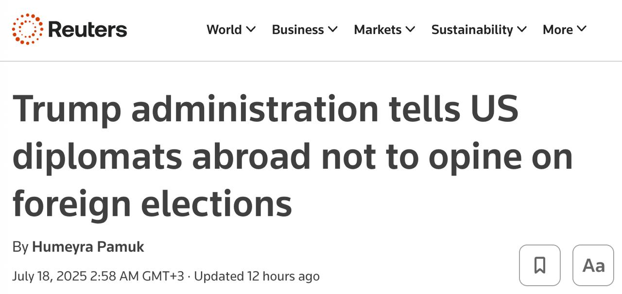 Державний секретар США Марко Рубіо заборонив американським дипломатам у всьому світі коментувати чесність та прозорість виборів в інших країнах.