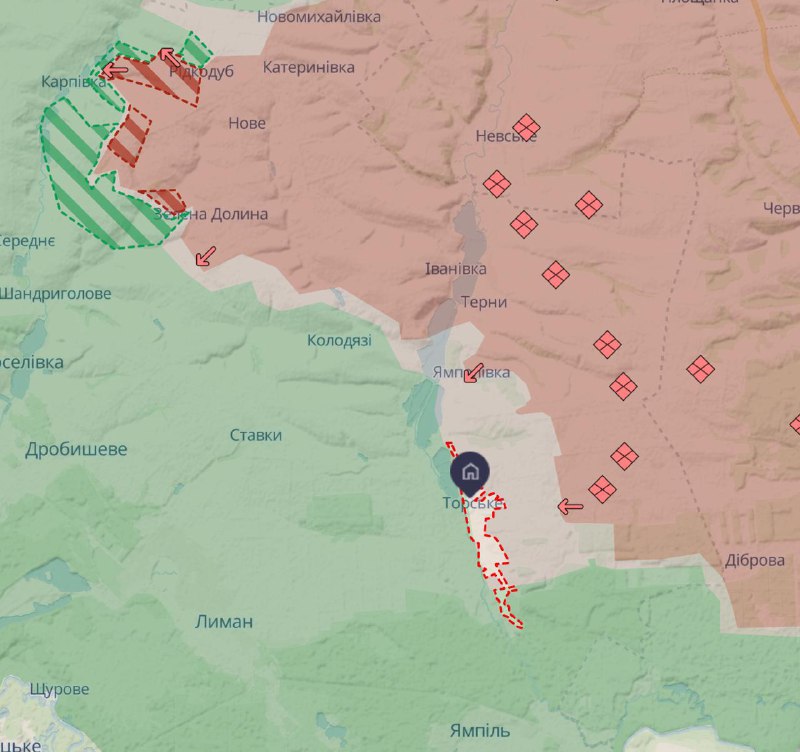 "Ворог просочився в Торське і зайняв оборону в оточенні – такі дії сприяють дестабілізації нашої оборони та просуванню ворога в цьому напрямку. Також просування у вигляді апендициту спостерігається на південний схід, таким чином ворог намагається реалізувати план