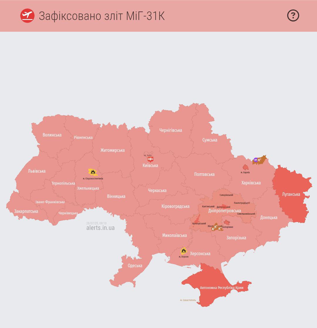 08:51 Новий зліт МіГ-31К та тривога по всій Україні – вже друга за цей ранок.
