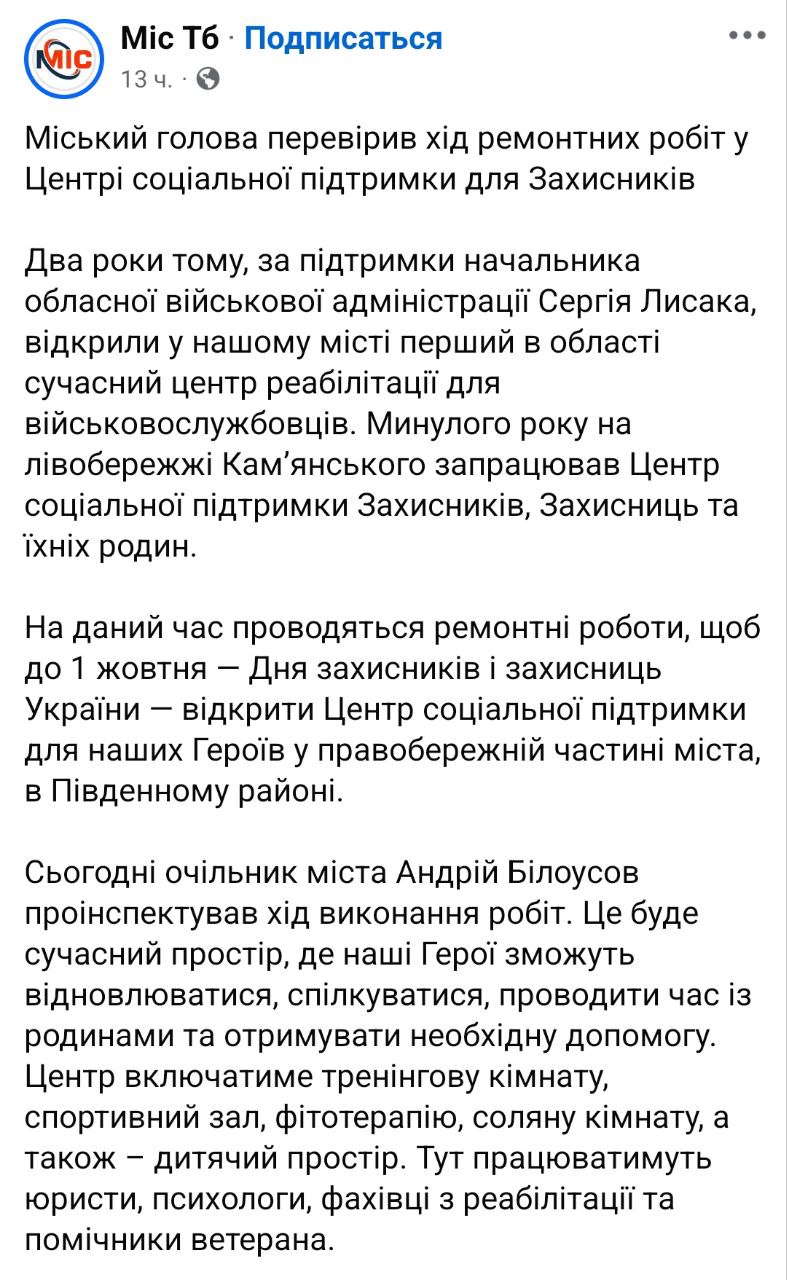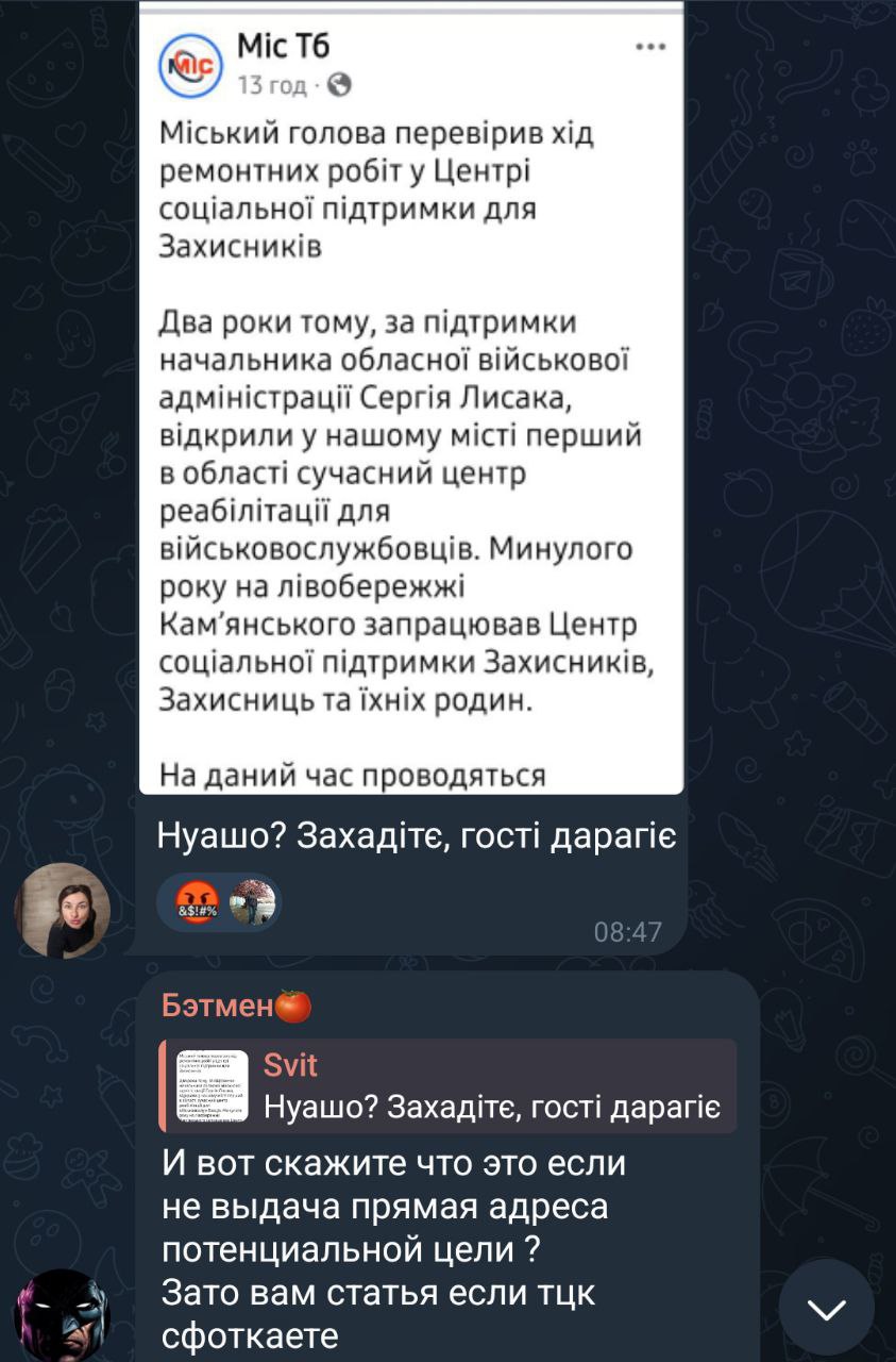 Мешканці в коментарях дорікають меру міста Андрію Білоусову в наведенні ракет, оскільки напередодні він опублікував пост із згадкою про цей центр. Він писав, що перевірив перебіг ремонтних робіт у закладі.