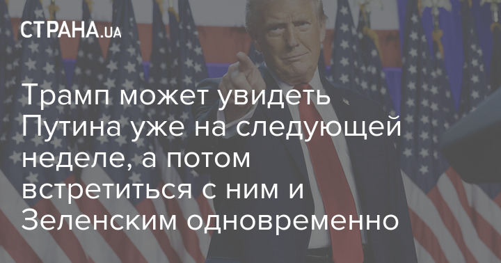 Президент США Дональд Трамп може провести особисту зустріч із російським колегою Володимиром Путіним вже наступного тижня, а незабаром після цього – тристоронню зустріч за участю Путіна та Зеленського.