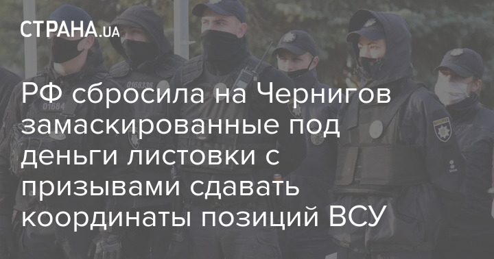Росіяни скинули на Чернігів листівки із закликами за гроші ділитися координатами позицій ЗСУ, замасковані під 100-гривневі купюри.