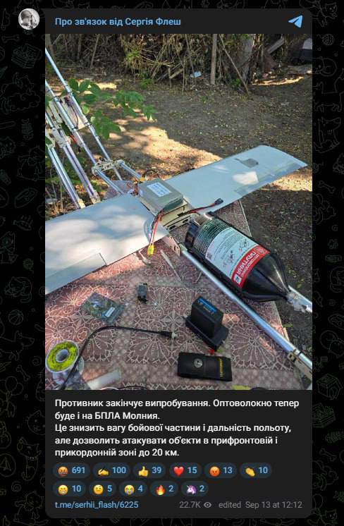 На озброєнні РФ з'явилися оптоволоконні БПЛА "Блискавка", моделі "Блискавка-2".