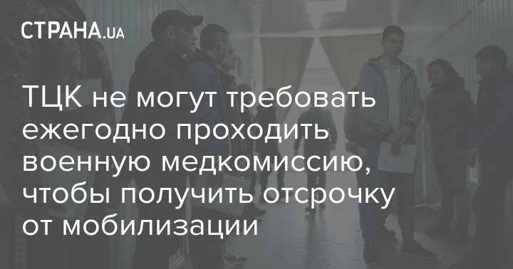 Територіальні центри комплектування та соціальної підтримки не мають права вимагати у громадян проходити військово-лікарську комісію щороку для отримання відстрочки.