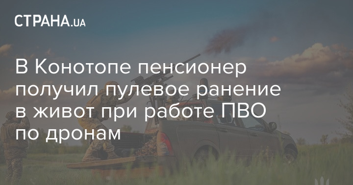 У Конотопі Сумської області під час роботи ППО з російських безпілотників було поранено 79-річного чоловіка. Він отримав кульове поранення у живіт.