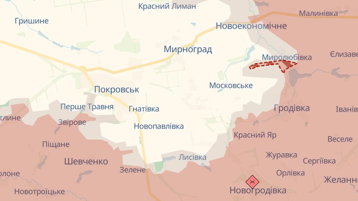 Росіяни вперше за довгий час просунулися на схід від Мирнограда – на 4-5 кілометрів з боку Миролюбівки, повідомляє Deep State.